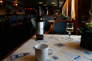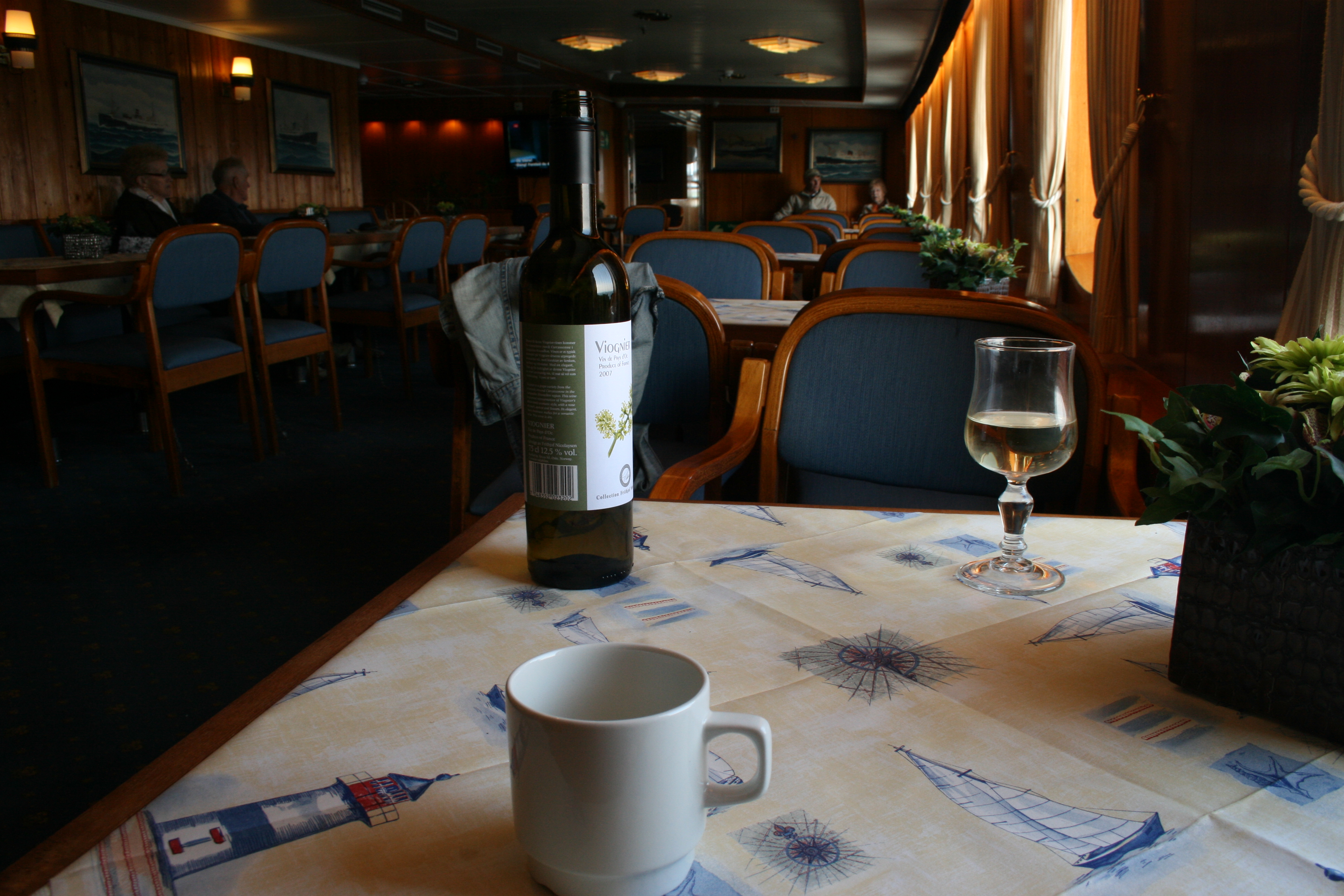 A coffee for me, a bottle of wine for my friend (Hurtigruten, NO)