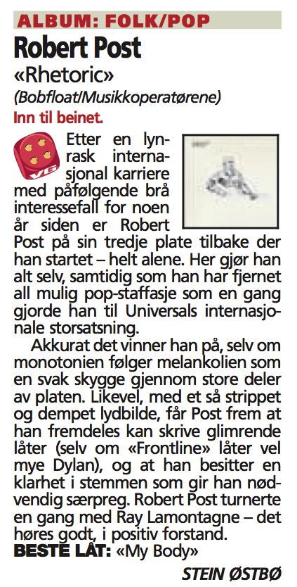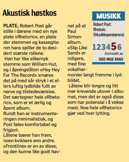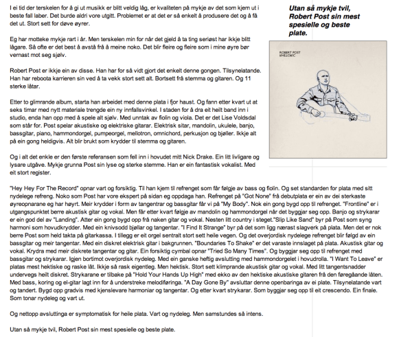 “ROBERT POST’S MOST EXCEPTIONAL AND BEST ALBUM SO FAR” Firdaposten